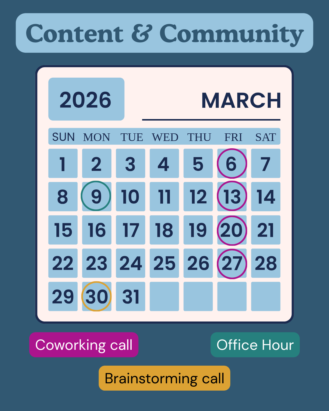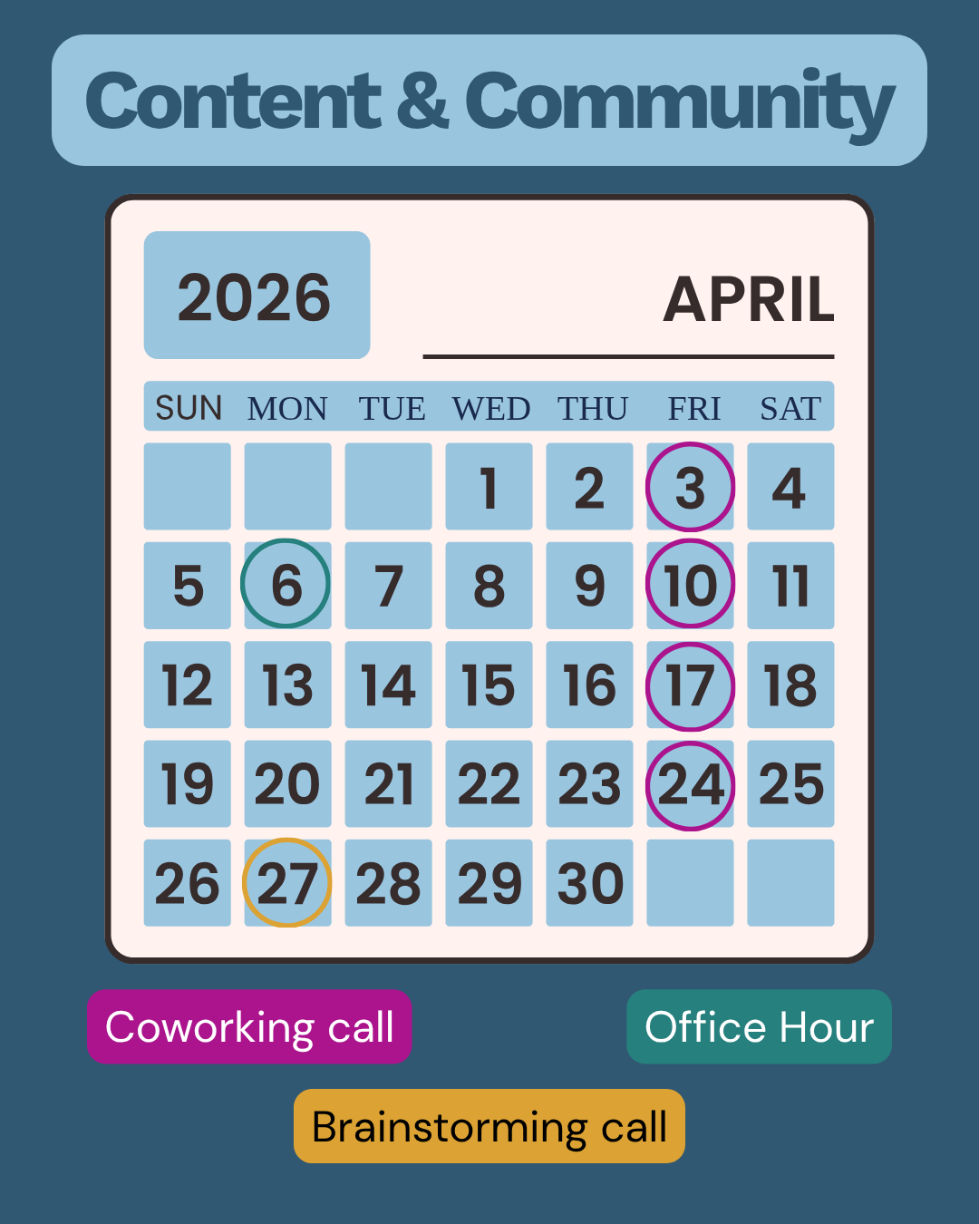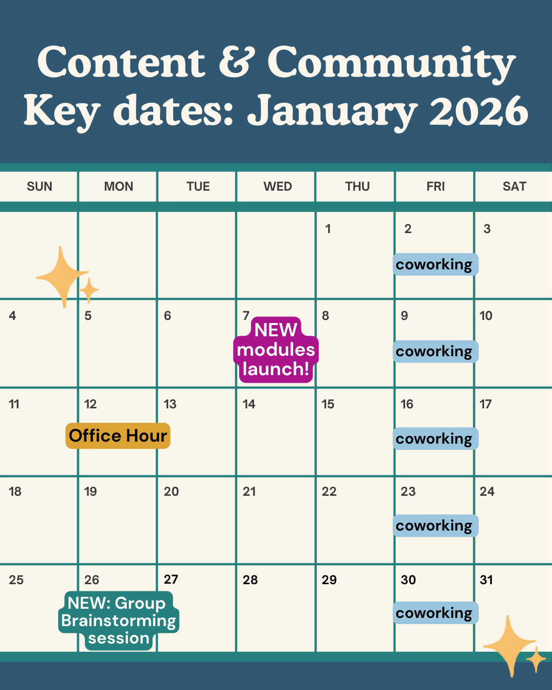 👩💻 Invites to our weekly 90-minute coworking calls so content is always on your calendar
